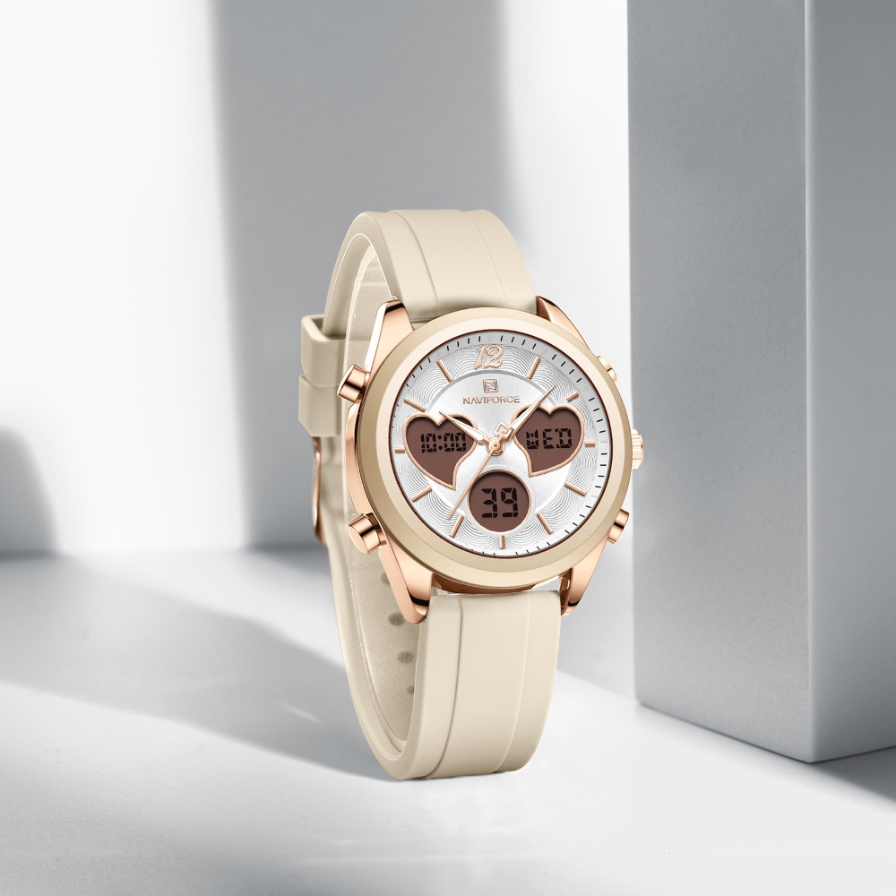 ویژگی: تقویم کامل – چراغ صفحه – دوزمانه – کرنوگراف – آلارم – ضدآب برای روزمره – رنگ ثابت